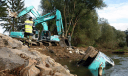 Anspruchsvolle Baggerbergung aus der Raab